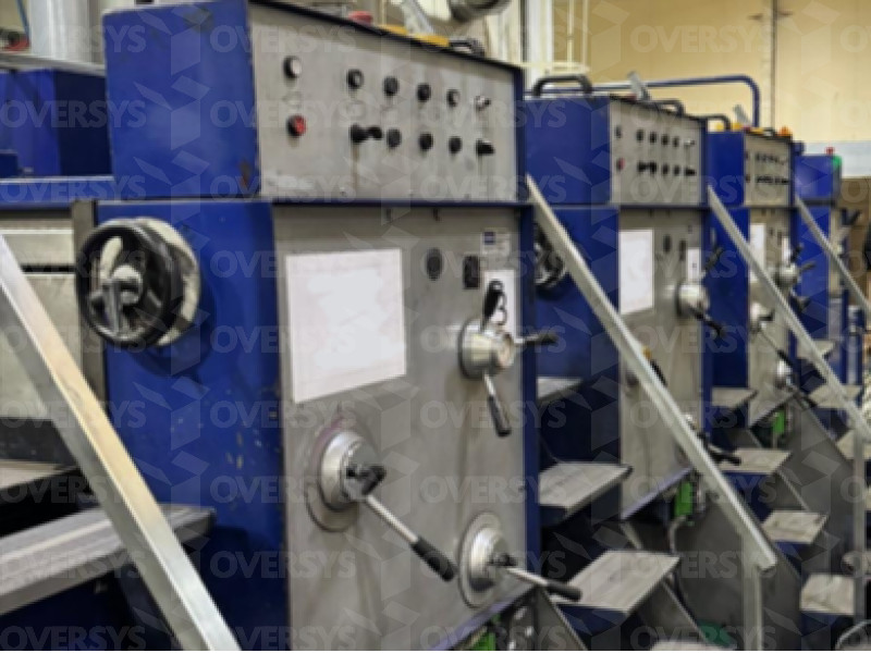 - 4 Flexo Printing Units, top printing, rubber rolls & ceramic anilox rolls with vacuum transfer
