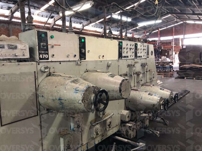 We present this SIMON 470 2 COLOR FLEXO FOLDER GLUER, max format 1200mm x 2800mm / 47" x 110", manufactured in the 80s.