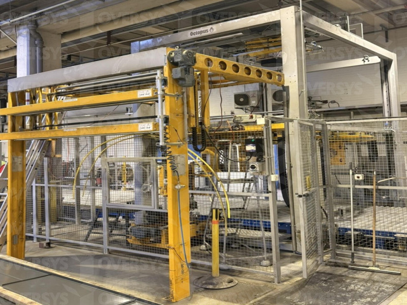 Presentamos esta FLEJADORA DE PALLETS MOSCA & HALOILA OCTOPUS ENVOLVEDORA DE PALLET COMPLETA, formato máx. 4500mm x 2400mm / 177.2" x 94.5", fabricada en 2006 y 2008.